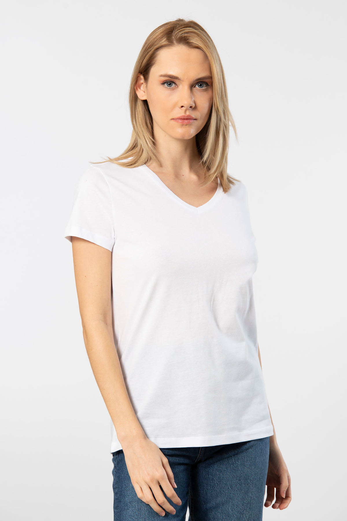 V yaka t-shirt - %100 pamuk